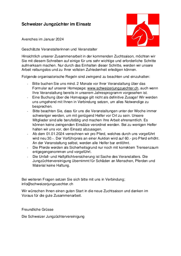 Bei der Generalversammlung der Jungzüchter, wurde der neue Vorstand bestätigt. Siehe folgenden Link