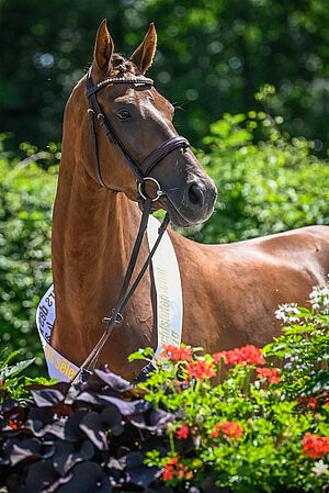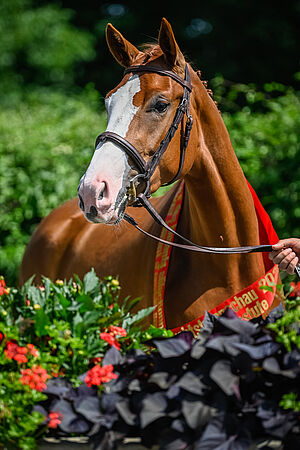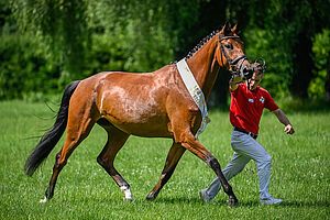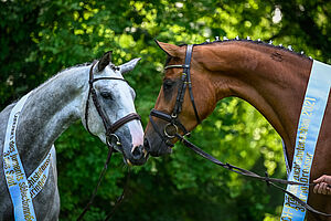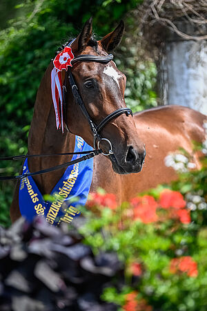 Buchstäblich eine Kopf-an-Kopf Ausmarchung an der Spitze bei den dreijährigen Stuten war die CH-Prämienzuchtstutenschau des Zuchtverbandes CH-Sportpferde ZVCH am 10. Juli im Nationalgestüt in Avenches. Die springgezogene Siegerin des Feldtests in Rickenbach TG, Baccara CH (Balou du Roeut – Carry – Calido) aus der Zucht von Paul und Kerstin Koch, im Besitz von Paul Koch aus Dozwil TG, obsiegte letztlich und wurde «Miss Schweiz 2021», weil sie mit dem absolut besten Feldtestergebnis aller beteiligten Stuten angetreten war. An der CH-Prämienzuchtstutenschau erreichte sie dann mit 9.67 auch eine ausgezeichnete Exterieur-Gesamtnote, war damit jedoch nicht allein. Auch die Dressurstute Morgana du Perchet CH (Millenium – Akribori – Columbus) aus der Zucht von Pierre Saunier, im Besitz von Walther und Myrtha Thomet-Zbinden aus Dielsdorf kam auf diesen hohen Wert, vermochte jedoch zusammen mit der Feldtestnote im Gesamtergebnis nicht an die Siegerin heranzukommen. Sie wurde an der CH-Prämienzuchtstutenschau Beste mit Dressurabstammung. Relativ knapp dahinter lag mit RG Curly Sue H CH (Cornet Obolensky –Contendro I – Calando II) aus der Zucht und im Besitz von Rudolf Guyer aus Bubikon wieder eine springgezogene Stute. Die Qualität der aufgeführten dreijährigen Stuten war sehr gut. So konnten abschliessend 41 von 45 Teilnehmerinnen den Platz mit dem Titel «CH-Prämienzuchtstute» verlassen.