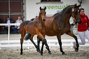 Form e dable W CH heisst das siegreiche Hengstfohlen Dressur. For Romance ist der Vater, Danish Beauty (Laudabilis) die Mutter des Dunkelfuchs-Fohlens, das die höchste Gesamtpunktzahl des Championats erzielte. Gezüchtet wurde es von Audrey Würgler aus Leymen. Barbara Bulloni aus Bretzwil ist stolze Besitzerin.