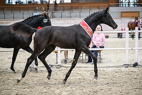 Bei den Hengstfohlen erreichten Calimo RH CH (Colorit – Ustina de Meuyrattes – Ustinov) von Reto Härdi und TRS Caravaggio CH (Chilli Willi – TRS Calua – Quiwi Dream) der Züchter Rebekka und Thomas Salzmann und im Besitz von Andrea Wyssen und Rolf Krieg zwar beide 285 Punkte. Die Experten entschieden, Calimo, der sich zum aktuellen Zeitpunkt etwas weiter entwickelt zeigte, auf Platz eins zu setzen. Beide Fohlen begeisterten das Publikum mit viel Qualität in allen Gangarten und ebensolcher Ausstrahlung. Mit 279 Punkten auf Platz drei folgte der ganggewaltige C&M Zac Blue CH (Zirocco Blue – Gypsy Queen YSK – Quality) von Marcel Moser und Christine Hadorn.