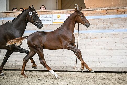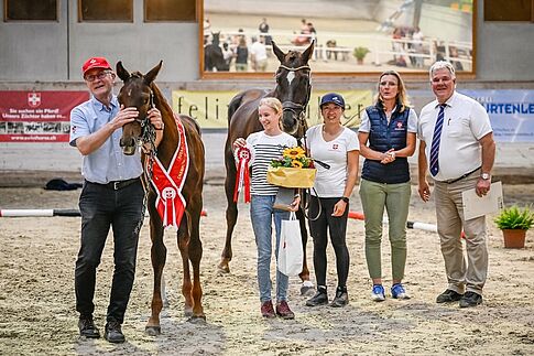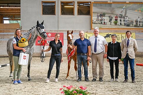 Bei den Hengstfohlen schliesslich begeisterte Fusaichi Totalis CH (Fürst Toto – Livia – Livaldon). Der schicke, leichtfüssige Dunkelfuchs aus der Zucht von Julia Zhu und im Besitz der Züchterin und ihrem Mann, ZVCH-Präsident Christoph Neuhaus erreichte hohe 286 Punkte. Hinter ihm auf Platz zwei und 283 Punkten folgte Alestro von Stichbach (Asagao xx – Destiny von Worrenberg – Destano) ein gelungenes Fohlen das durch seines Papa, Vollblüter Asagao xx, bestimmt einen Weg in Richtung CC-Sport einschlagen könnte – vielleicht mit seiner Züchterin Maja Singer-Flück, die ebenfalls im CC-Sport aktiv ist. Auf Platz drei schliesslich folgte Glamour ZS CH (Glamourdale – Joli Coeur ZS – Johnson) aus der bewährten Zucht von Claudia Schwendener und Thomas Schneider, im Besitz von Anne-Lise Sandoz.