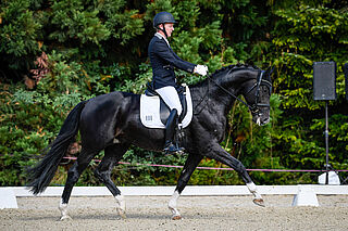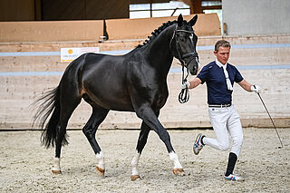Sir Picasso, ein sechsjähriger, schwarzbrauner Trakehner aus der Zucht und im Besitz von Charlotte Vogel aus Niederbipp, weist bereits eine beachtliche Dressur-Eigenleistung bis Klasse M aus und ist für den Trakehner-Verband gekört. Sein Vater ist der bekannte Gribaldi-Sohn Distelzar. Mutter Sirikit (Pretty Dancer – Kostolany – Polar) war im Fahrsport S-klassiert. Unter dem Sattel zeigte er sich der Aufgabe im Dressurviereck bestens gewachsen und hinterliess einen guten Eindruck. Der 170 cm grosse, stattliche Schwarzbraune zieht den Blick mit viel Ausdruck auf sich.