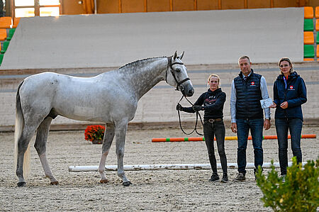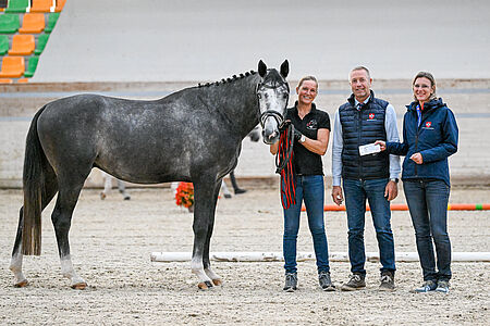 Milan von Worrenberg, ein dreijähriger Schimmel, gab sich während der ganzen Körung sehr abgeklärt. Sein Vater ist der S- und international klassierte Plot Blue-Sohn Million Dollar, seine Mutter die Holsteiner Stute B-Caramba (Cascari – Landjunker II – Moltke I). Milan von Worrenberg präsentierte sich mit guter Bewegung und vermochte sowohl im Freispringen als auch unter dem Sattel zu überzeugen. Züchter ist Dr. Ferdi Hodel, Volken, Besitzerin die Pferdezucht von Worrenberg GmbH, Ferdi & Sandra Hodel, Volken.