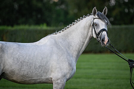 Picobello van’t Roosakker ist ein siebenjähriger Schimmel, Sohn des S-klassierten Belgier Hengstes Kassander van’t Roosakker und der My Lady Belle van’t Roosakker (Canabis – Eurocom. Berlin (ex Caspar) – Quidam de Rével), gezüchtet von Marc Kluskens, Belgien und im Besitz von Daniel Etter; Müntschemier. Seine Verwandtenleistung im Springsport ist beeindruckend, und auch seine bisherige Eigenleistung in Springen bis Klasse 145 cm darf sich sehen lassen. Picobello van’t Roosakker ist bereits gekört für die Verbände Z, Oli, HA, Bay, Br und DSP.