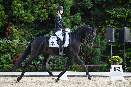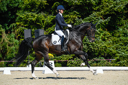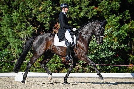 Als Favoritin war sie nach der Qualifikationsprüfung bei den sechsjährigen Dressurpferden zum Final angetreten; als Siegerin konnte sie schliesslich gefeiert werden: die ehemalige SBC-Siegerin Ruby Blue KWG CH (Farrell – Abanos) aus der Zucht von Walter Kunz, Grosswangen. Käthi Ziörjen aus Wetzikon stellte die edle Dunkelbraune auf feine Art vor. Ruby Blue KWG CH steht im Besitz von Verena Guran, Zumikon. Das zweitbeste Gesamtresultat von 77% erreichte der am Freitag frisch gekörte Trakehner Hengst Sir Picasso mit Thomas Kevin im Sattel. In der CH-Meisterschaftswertung konnte der im Besitz von Züchterin Charlotte Vogel aus Niederbipp stehende Hengst jedoch nicht berücksichtigt werden. So ging Silber an den dunkelbraunen Zaniro de Oxalis CH (Zalando – De Niro) aus der Zucht von Stephanie Schoellkopf und Urs Huber aus Nunningen. Gilles Ngovan aus Willadingen war sein Reiter, Marion Waldenmaier aus Soulce ist seine Besitzerin. Bronze resultierte mit Vero Nero KWG CH (Van Vivaldo – Abanos) für ein weiteres Pferd aus der Zucht von Walter Kunz. Tamara Horisberger aus Champroz stellte den dunkelbraunen Wallach vor. Besitzerin ist Marianne Wicki, Savagnier.