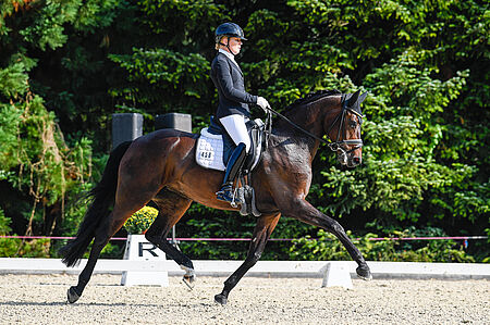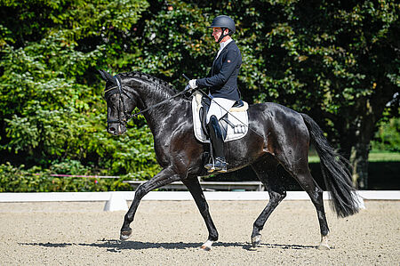 An der WM der jungen Dressurpferde bewies sie im Final ihre Qualität. Aus Deutschland wurde sie nach Avenches gebracht, um an der SM der CH-Sportpferde teilzunehmen. Mit sagenhaften 91% konnte die fünfjährige, stattliche, dunkelbraune La Traviate CH mit Sandra Köttel im Sattel als Meisterin gefeiert werden. Die qualitätsvolle Tochter von For Romance war aus der Lord Sinclair-Tochter L’Amour Toujours von Daniel Steinmann aus Rüti ZH gezogen worden. Seinen zweiten Rang nach der Qualifikation konnte der dunkelbraune Wallach Fitch Unstopable KWG CH (Finest – Samarant) mit Fabienne Fischer aus Rothenburg im Sattel im Final behaupten. Walter Kunz aus Grosswangen hat den eleganten Wallach gezüchtet. Annette Frey aus Rotkreuz ist dessen Besitzerin. Eva Nydegger aus Schwarzenburg stellte den Fuchswallach Moshaco CH (Morricone – Apache) auf ansprechende, harmonische Weise vor. Im Final gelang dies noch besser als in der Qualifikation, sodass schliesslich trotz Punktegleichheit mit dem folgenden Wallach L’Amour KWG CH der dritte Schlussrang resultierte.
