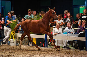 Der neue OK-Präsident der LW-Sportfohlenauktion, Jürg Meyer, kann mit seinem Einstand zufrieden sein: Ein volles Haus, gute Stimmung, gesamthaft ein gutes Ergebnis und erst noch sein gutes Fohlen für gutes Geld verkauft. Als Volker Raulf die Auktion eröffnete, blickte er in eine grossartige Publikumskulisse und konnte bereits bei den ersten sechs Angeboten drei Championatsfohlen anpreisen. Doch die Startphase verlief schleppend. Mit Nummer 7 aber kam Saja Nera UG CH, eine dunkelbraune Secret-Tochter, gezogen von Esther Haas, Kriens, aus der Sertina CH (Sergio Rossi-Weltfeuer). Bei diesem ausdrucksstarken, sich gut und locker bewegenden Fohlen kam richtig Stimmung auf. Es war am Nationalen Fohlenchampionat eines der mit 294 Punkten am höchsten bewerteten Fohlen seiner Kategorie. Die Gebote stiegen rasch bis auf 28'000 Franken. Mit der Nummer 13 erfolgte dann der Paukenschlag. Mit Uno II, Hertbreaker, Nimmerdor, im Springsport hocherprobte Hengste vaterseits, der ebenfalls erfolgreichen Elite Suisse-Stute Carlina CH (Crolus-Philippe) und einer beeindruckenden Verwandtenleistung mütterlicherseits sowie einem zweiten Rang am Fohlenchampionat liess sich über das dunkelbraune Stutfohlen Una Stella RHS CH bereits viel Positives berichten. Es präsentierte sich als modernes, sportliches und leichtfüssig auftretendes Energiebündel, das die Gebote bis auf 39'000 Franken steigen liess. René und Josef Helfenstein aus Sempach haben dieses Top-Sportfohlen gezüchtet. Für 20'000 Franken wechselte dann eine weiteres Secret-Fohlen die Hand. Der fuchsfarbene Sohn des Vize-Bundeschampions 2017 und Silbermedaillen-Gewinner an der WM der jungen Dressurpferde 2019 heisst Safir von Buchmatt CH. Seine Mutter ist Deena von Buchmatt CH (Danone-Wolkenstein II), Vierte an der Prämienzuchtstutenschau 2017 und Vollschwester des bekannten Dressursportlers Delioh von Buchmatt CH. Gezüchtet hat dieses begehrte Fohlen Josef Lustenberger aus Hasle. Für Standig Tall CH (Stolzenberg-Radolin-Purioso) aus der Zucht von Nicole und Jürg Meyer-Erni aus Kallern erfolgte der Zuschlag bei 17'000 Franken. Die Mutter dieses dunkelbraunen, keck und sportlich auftretenden Stutfohlens ist die Elite Suisse Stute Watch Me B, mit einer Lebensgewinnsumme von fast 14'000 Franken im Springsport erfolgreich. Sie brachte mit dem Fohlen So What, ebenfalls von Stolzenberg, die Preisspitze von 16'000 Franken an der LW-Auktion 2018. Clea LH CH, ein dunkelbraunes Stutfohlen aus der Zucht von Urs Steiner aus Obergerlafingen, wechselte für 19'000 Franken die Hand. Sein Vater ist der mit Marcus Ehning begeisternde Comme il faut (Cornet Obolensky-Ratina Z). Seine Hannoveraner Mutter Elektra, Staatsprämien- und Elite Suisse-Stute hat Embassy I zum Vater, der unter anderem mit SAP Escada FRH das international hoch erfolgreiche Vielseitigkeitspferd von Ingrid Klimke brachte. Bei 11'000 Franken fiel der Hammer beim dunkelbraunen Hengstfohlen Aarhof’s My Way CH (Mylord Carthago-Aarhof’s Caliano-Larno II). Martina und Willi Hartmann aus Schinznach hatten dieses Fohlen aus einem hoch erfolgreichen Mutterstamm gezogen.