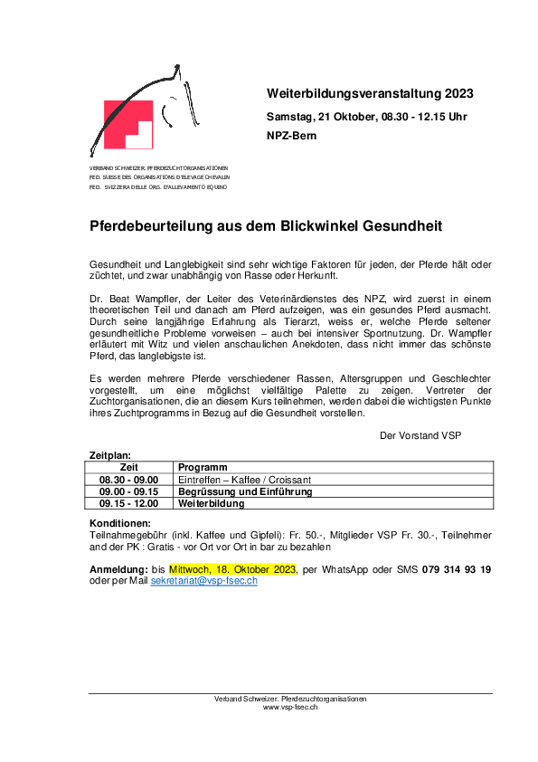 Weiterbildungsveranstaltung 2023 VSP