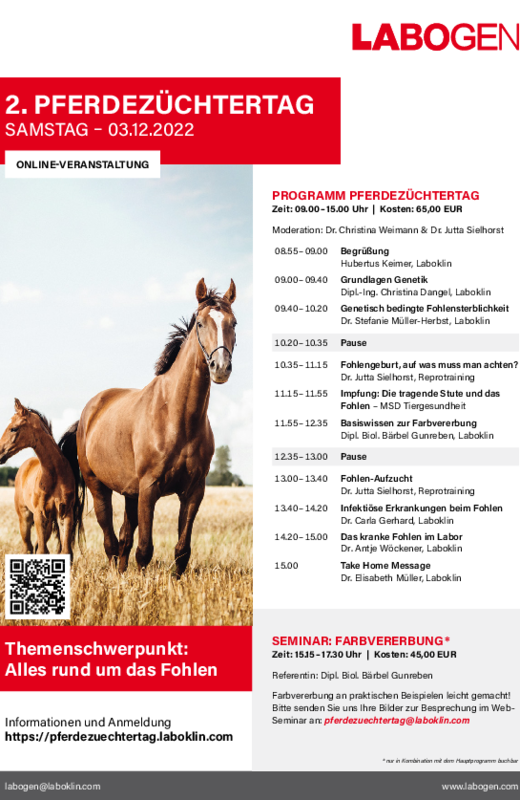 L'événement se déroulera en allemand. Inscription direct à Laboklin!